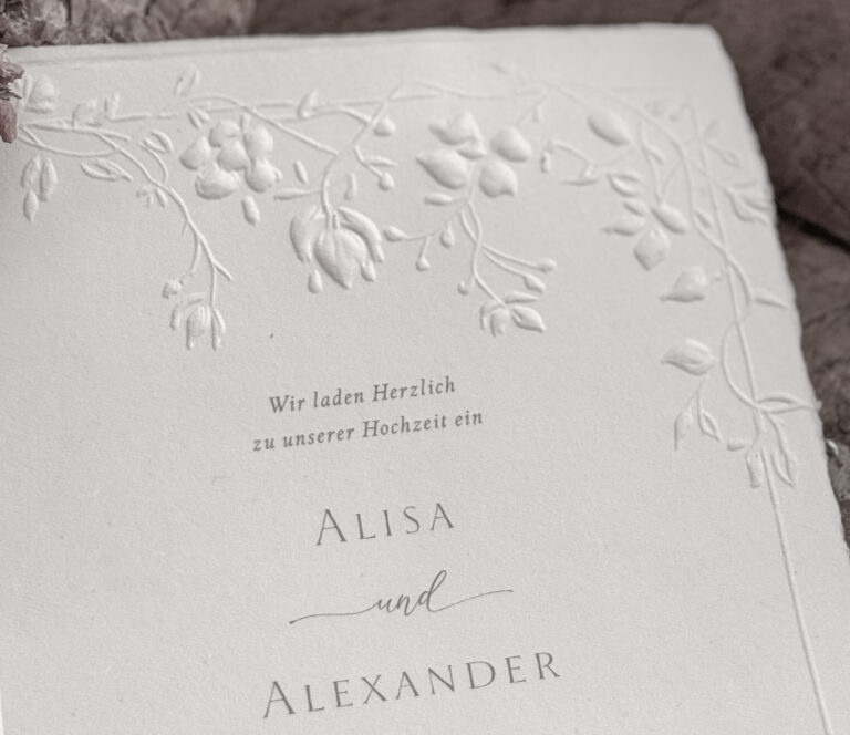 Handgefertigte Grußkarte aus handgeschöpftem Papier, veredelt mit Embossing-Technik