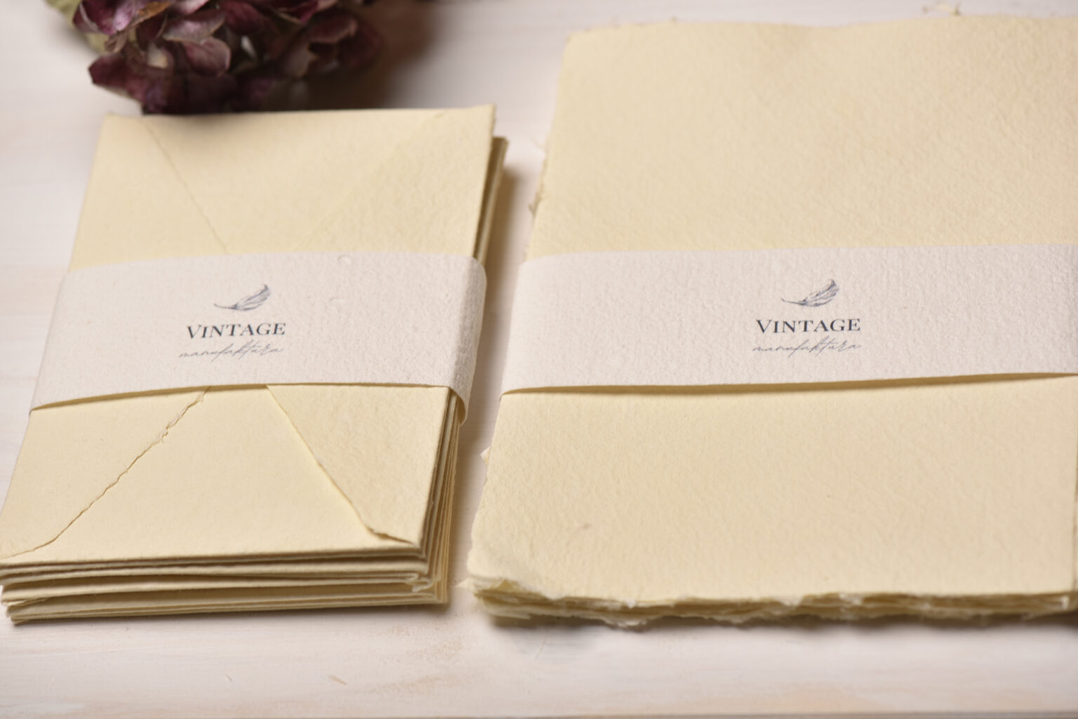 Handgeschöpftes Papier on Ecrü Farbe in weigh (~200 gsm) für Einladungskarte. Erhältlich in 10er-Packungen.