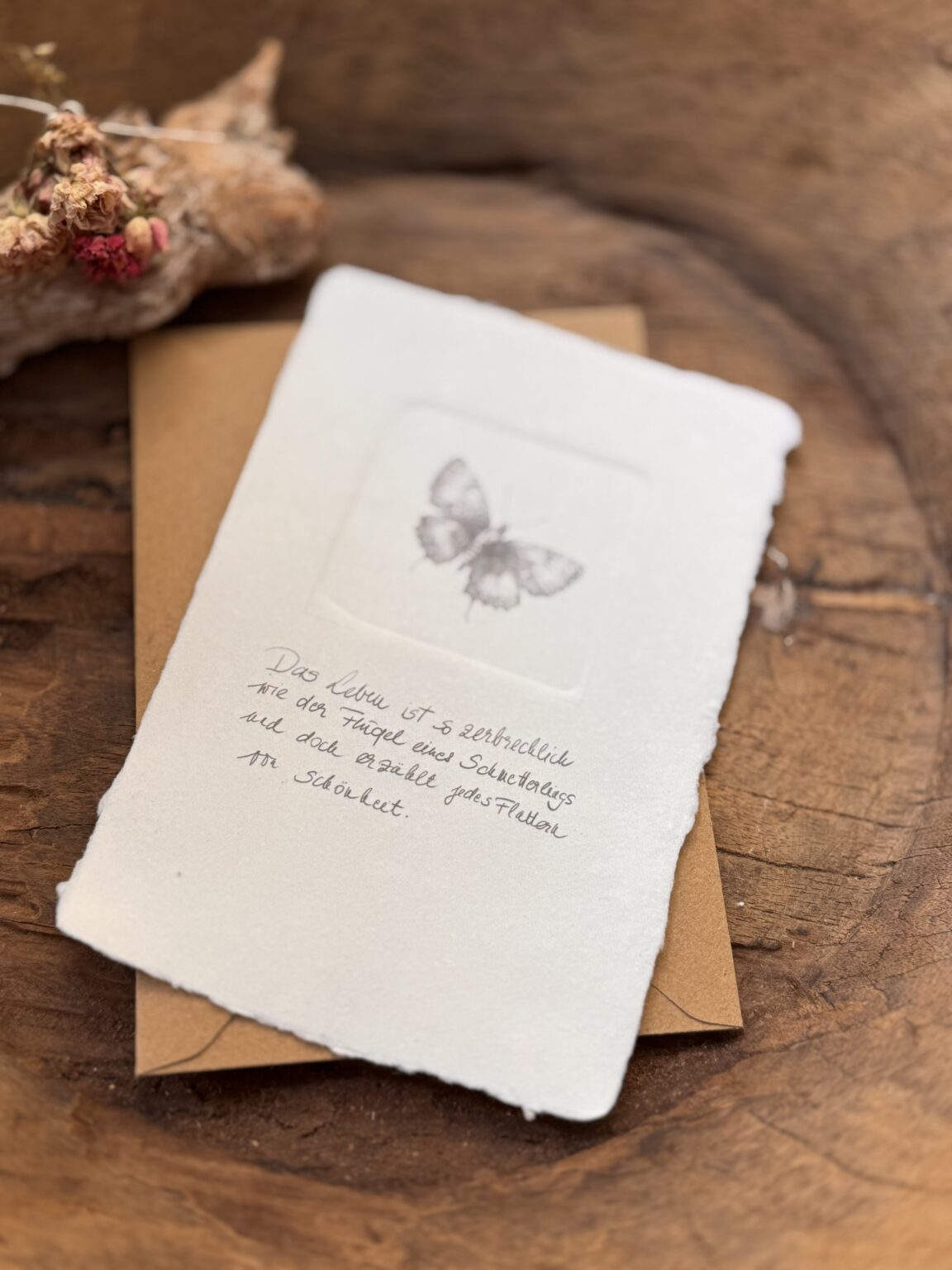 Handgefertigte Grußkarte aus handgeschöpftem Papier, veredelt mit Embossing-Technik 6