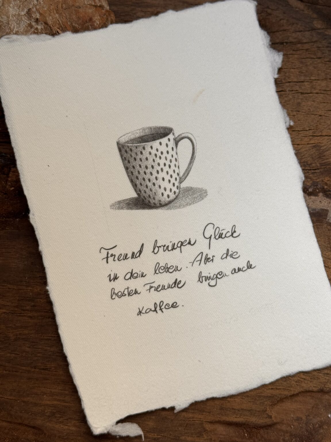Grußkarte, Inspirationkarten der Gedanken mit kaffee Tasse
