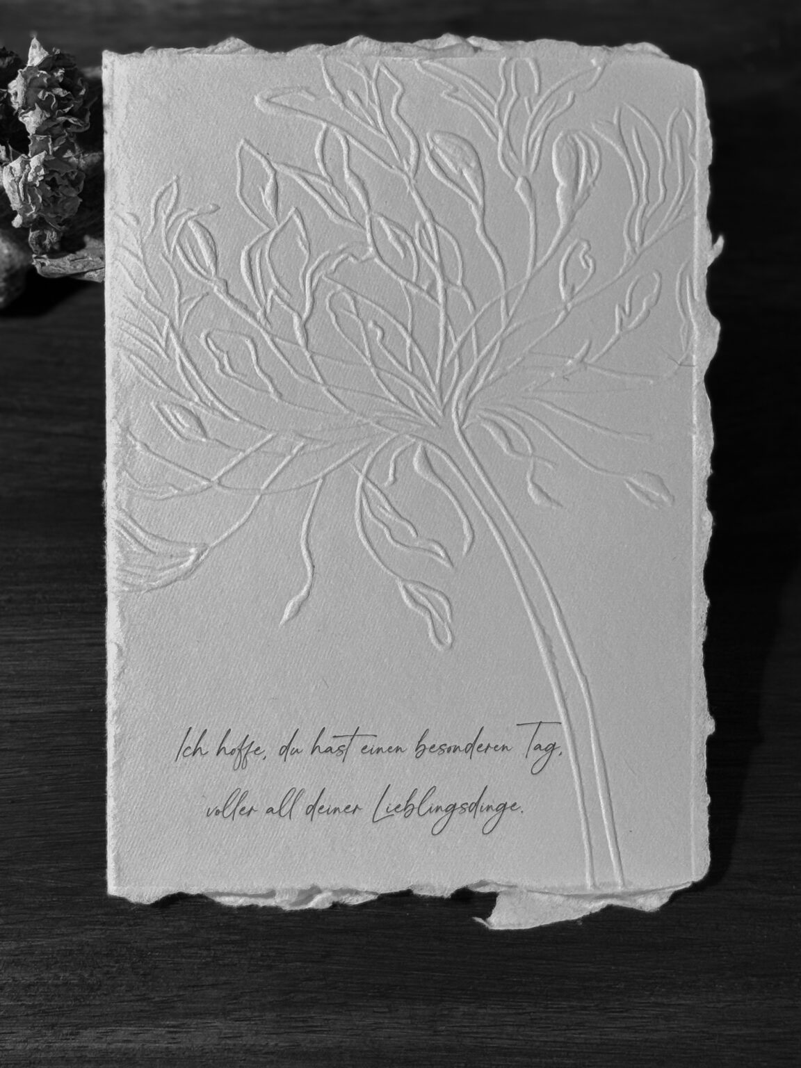 Handgefertigte Grußkarte aus handgeschöpftem Papier, veredelt mit Embossing-Technik 6